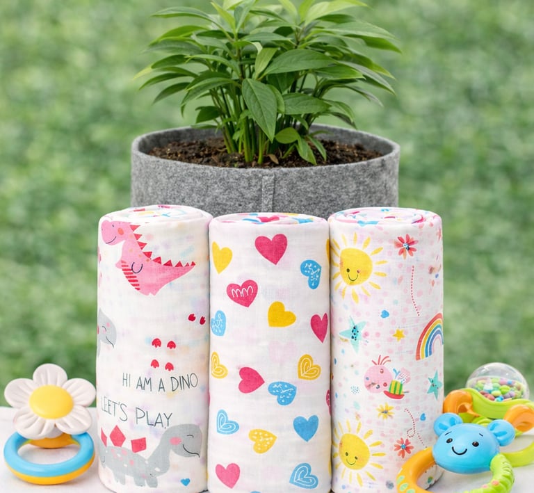 Thoughtfully crafted muslin cloths and baby accessories designed for your little one's active days and peaceful nights.